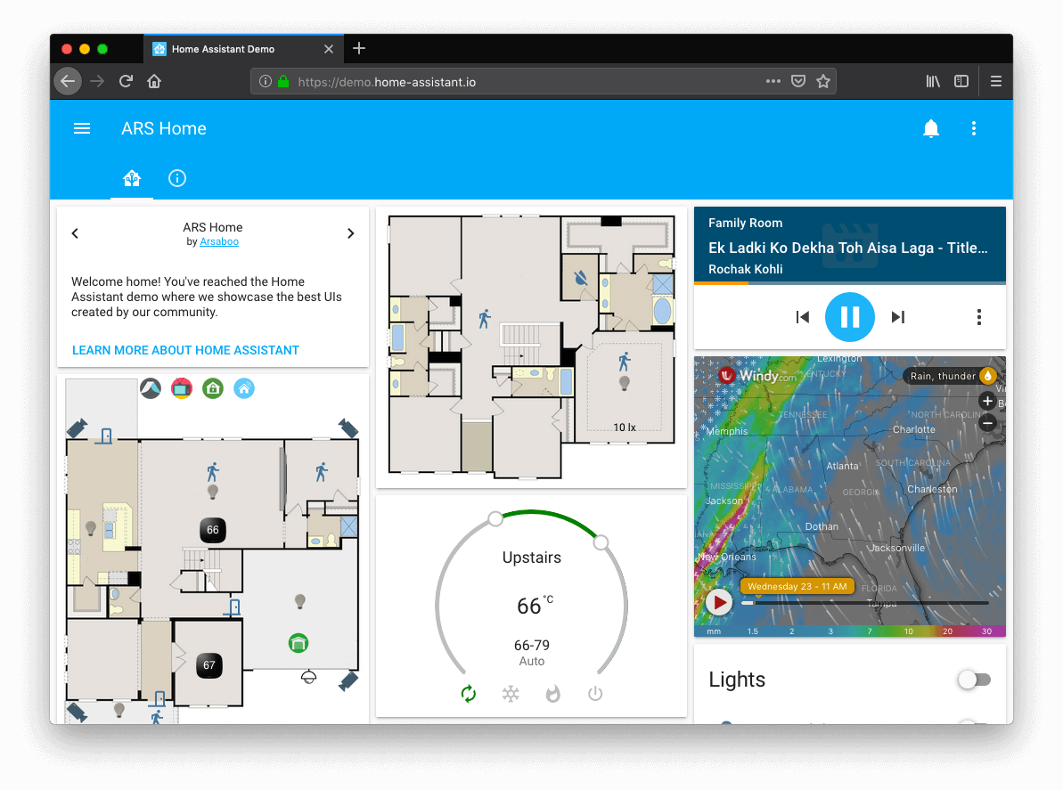 Sonoff eru nýbyrjaðir að selja CC2531 USB Zigbee dongle á $4 sem virkar mjög vel með þessu. Nota það til að tala við Xiaomi (Aqara) hita og rakaskynjara. Sömuleiðis talar HA við Ring myndavélarnar, hýsir AdGuard (nýja PiHole), LifX perum, sýnir veðurspánna ásamt því að sýna Windy vindaspá yfir Íslandi, SpeedTest plugin sem keyrir reglulega og athugar niðurhal,upphal og ping ofl ofl.